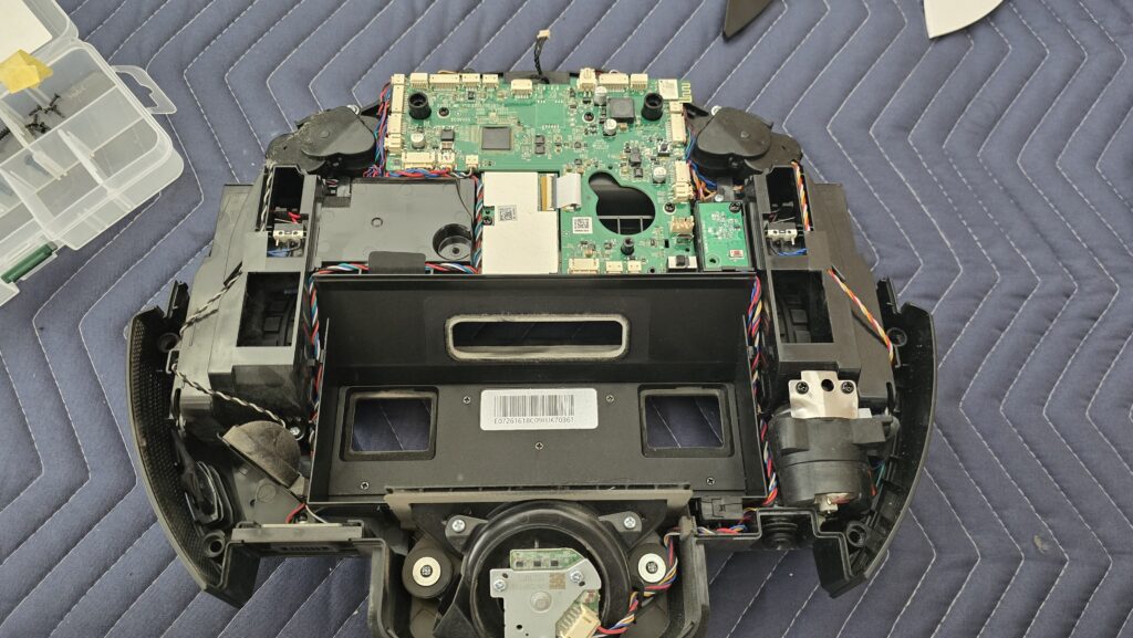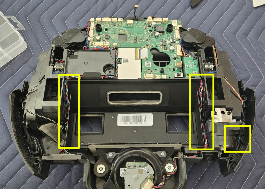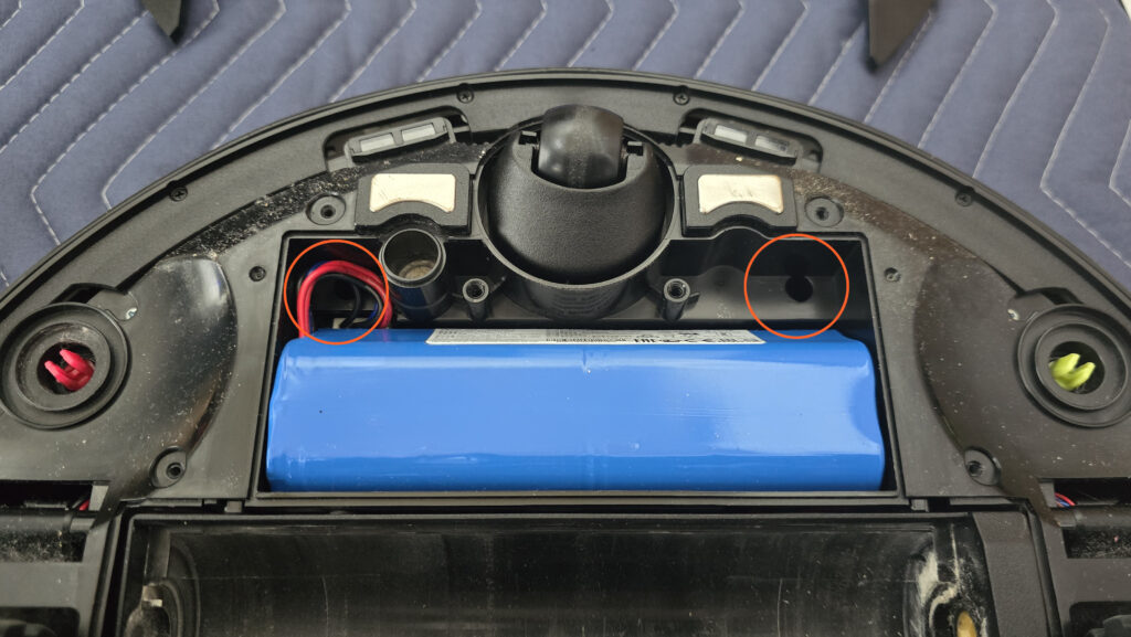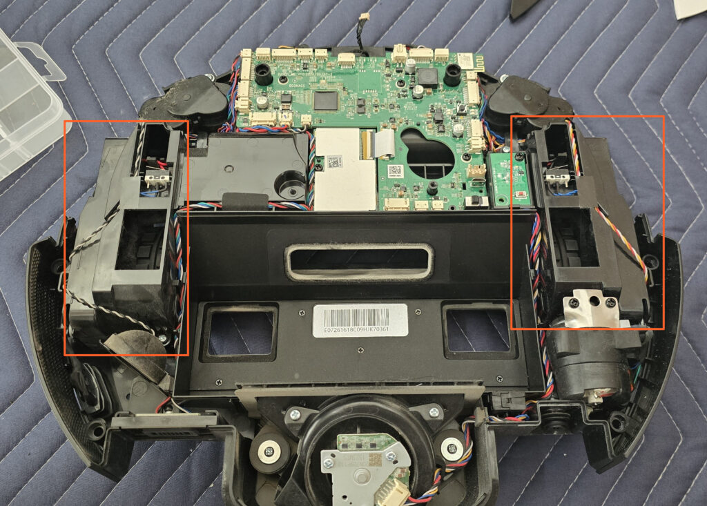 次にダストボックスが入っている側のカバーを持ち上げて3Dセンサー下にある二つのシリコンキャップを外してネジ2本抜きます。