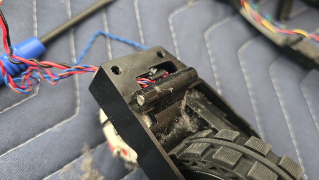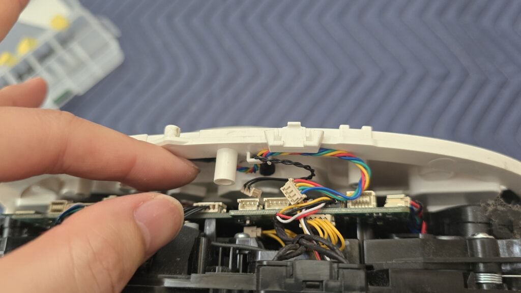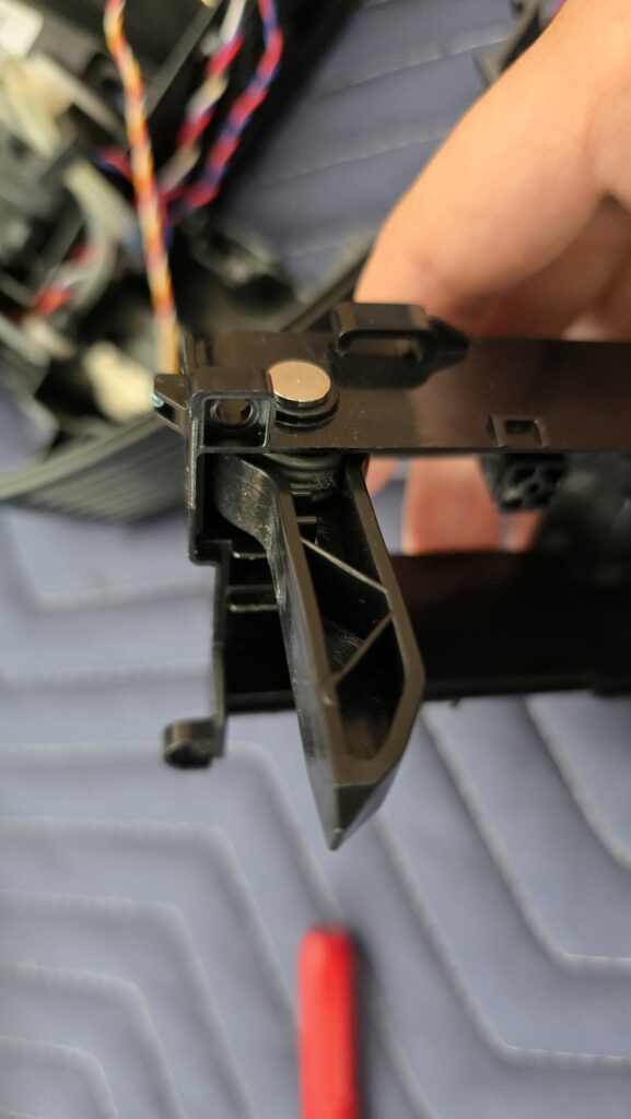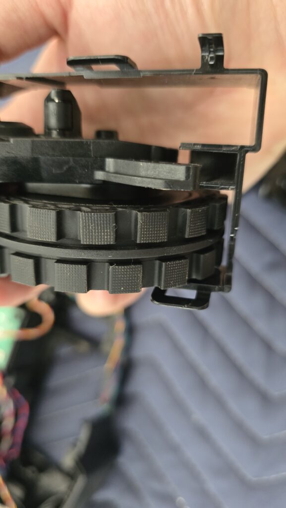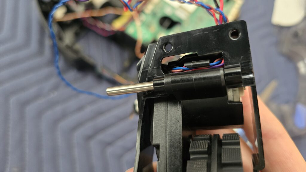 その際はアッセンブリ上についているホイール位置検知センサーをヒョイっと外してください。ガイドが2本立っているだけなので、引っ張れば簡単に取り外せます。