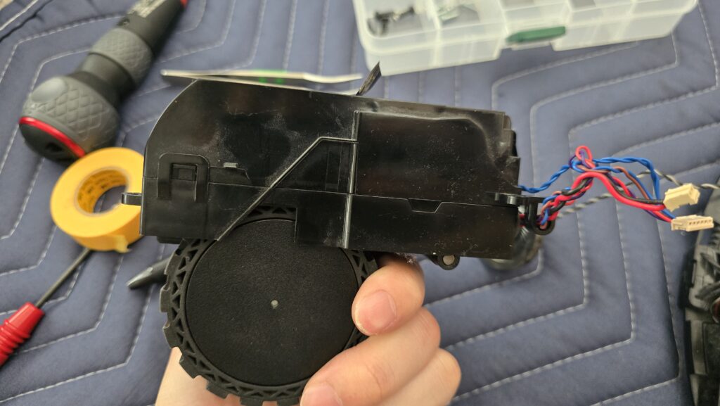 モーターのみも販売(1200円ぐらい)していましたが、ギアボックスの組付けが面倒なのとホイール自体のゴムも多少劣化してグリップが悪くなっている可能性があったので丸々交換します。